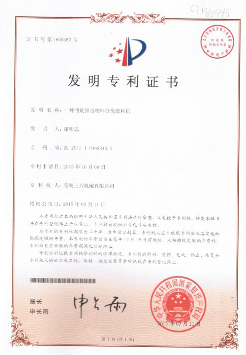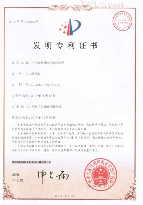 • 發(fā)明專利證書